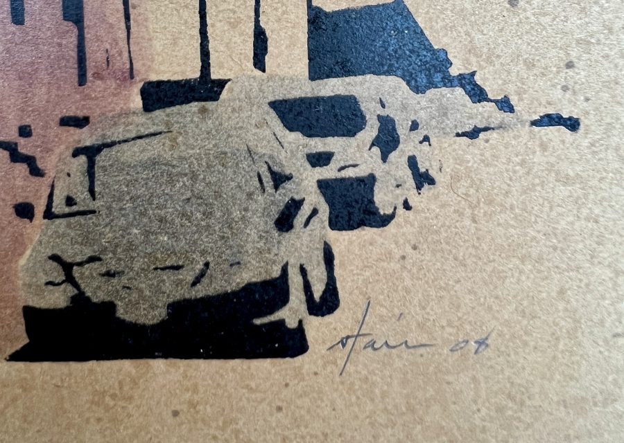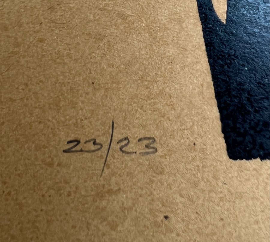 Description: Stencilled and hand painted print on archival paper, 2008. Signed and numbered 23/23 by the artist. (Unframed)