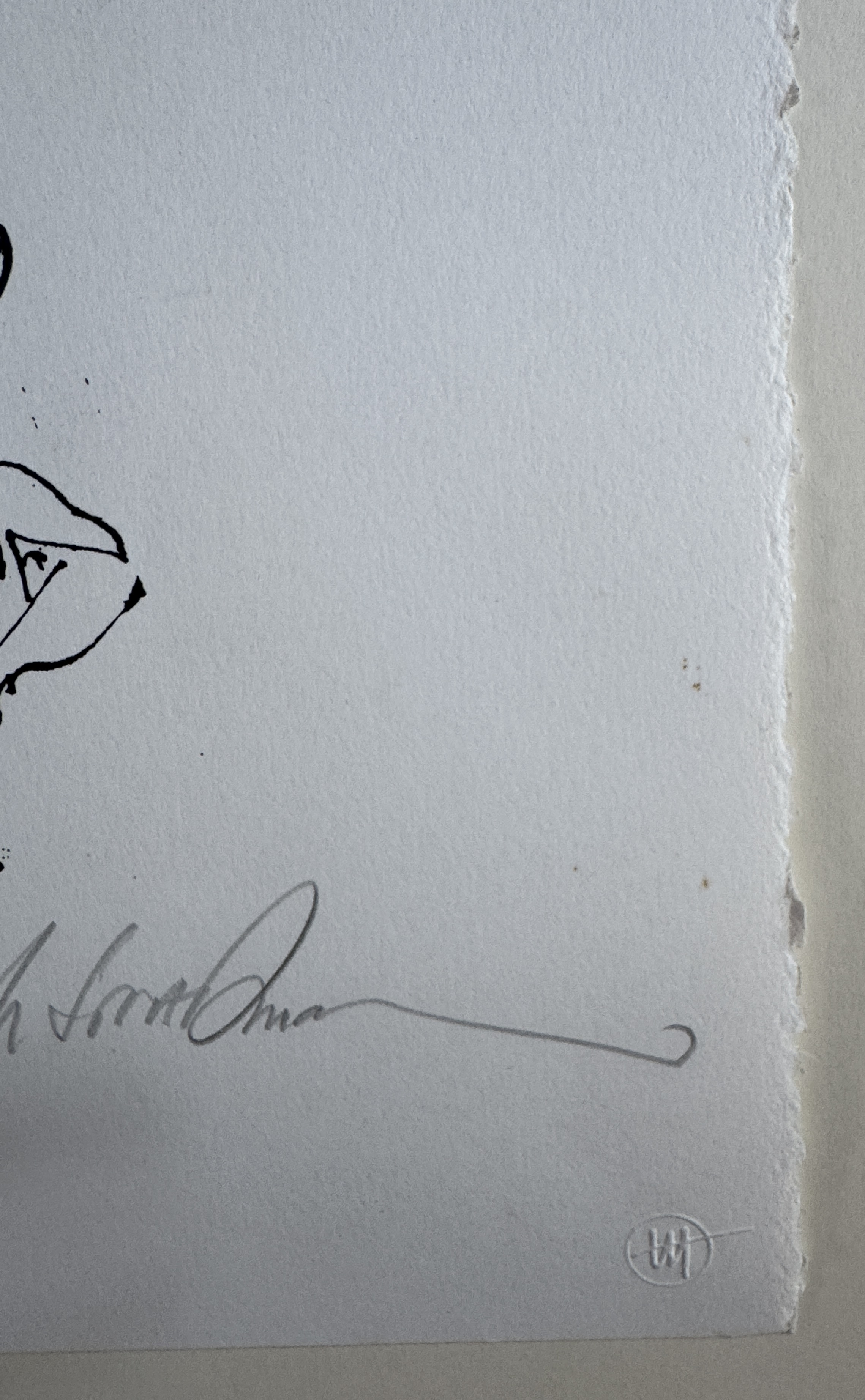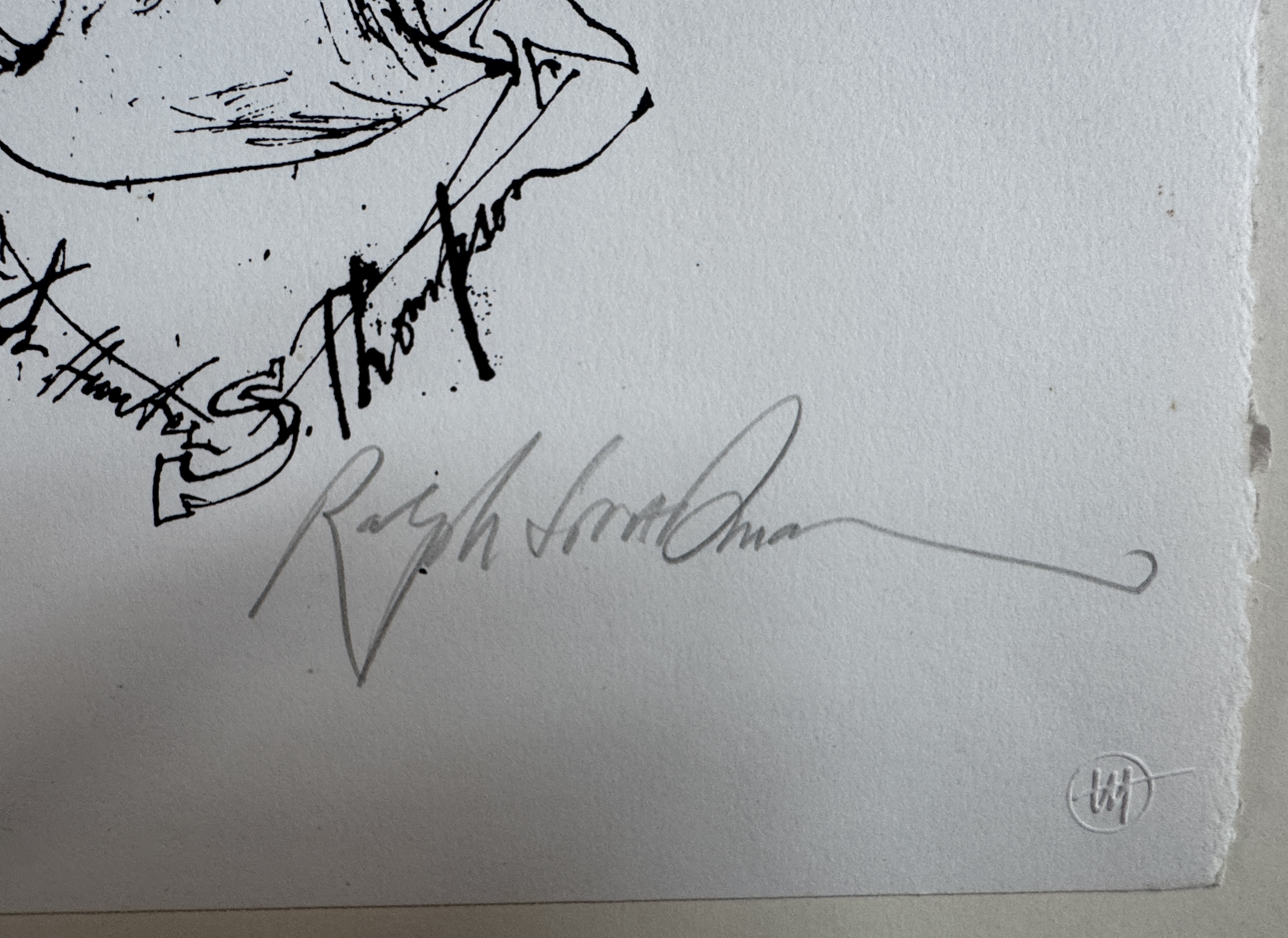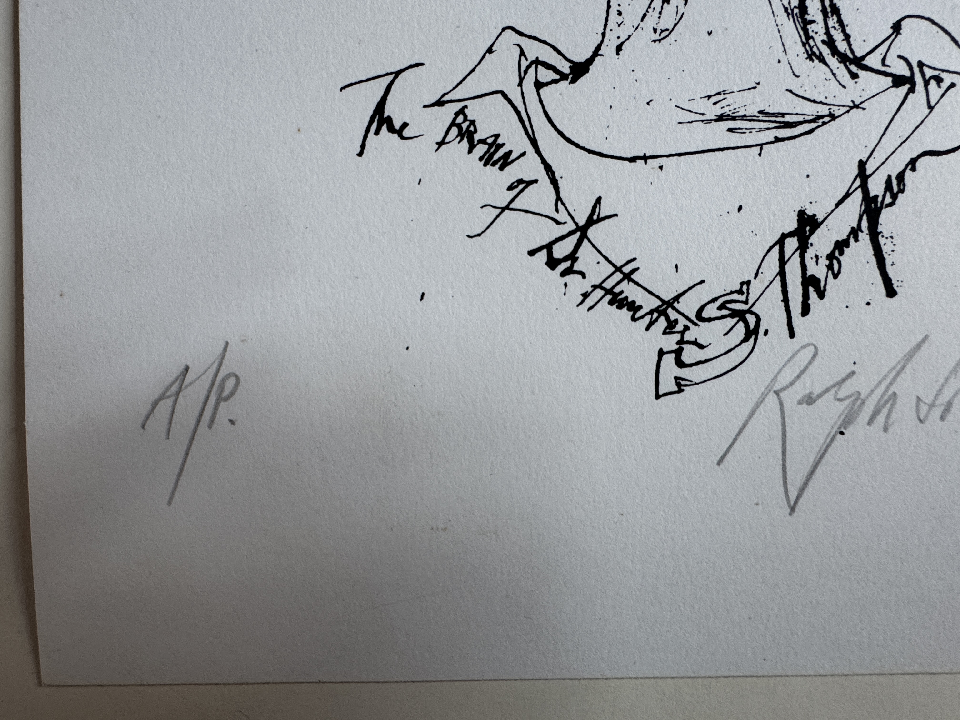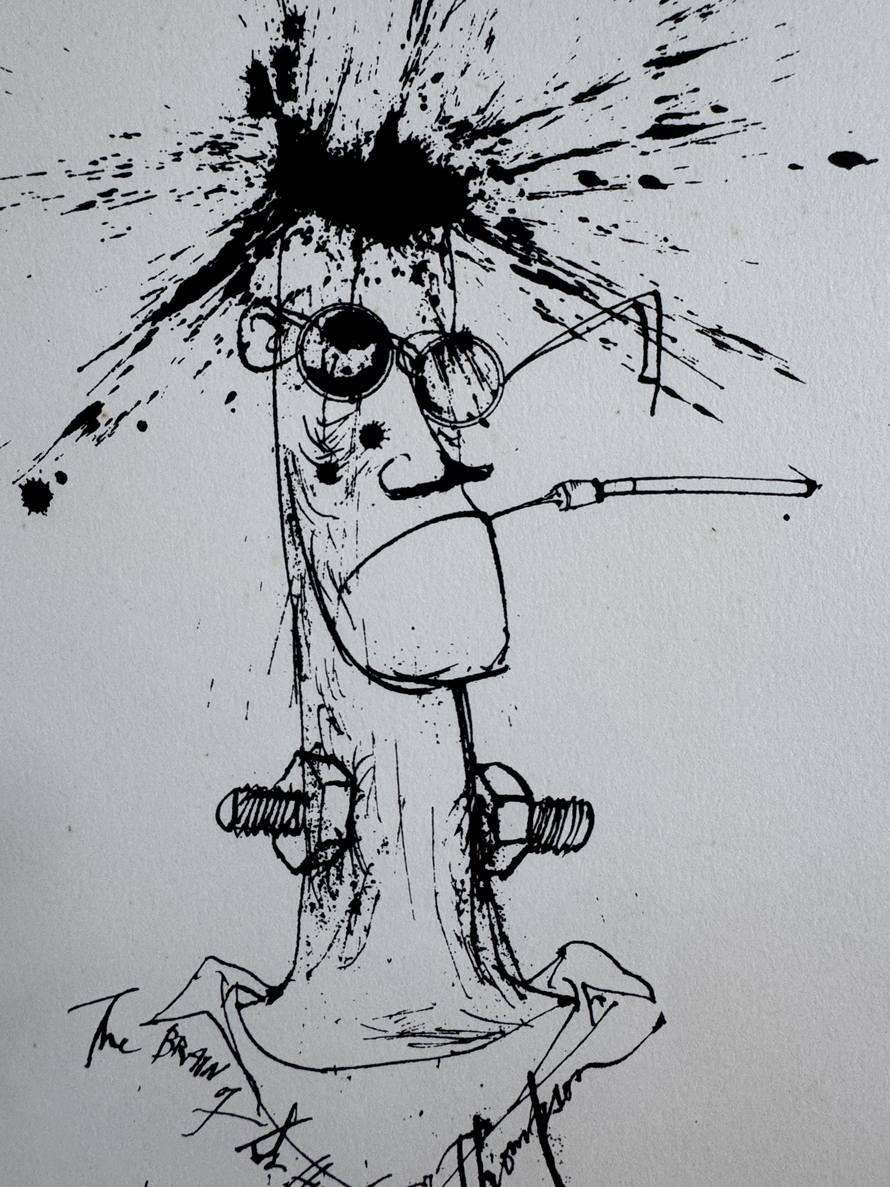 Description: Silkscreen printed on paper, 2010. A portrait of Hunter S. Thompson. This print was originally produced as an edition of 800. this is an artist’s proof aside from that. Published by Joe Petro III. There are some minor marks as can be seen in the photos, top left and bottom right.