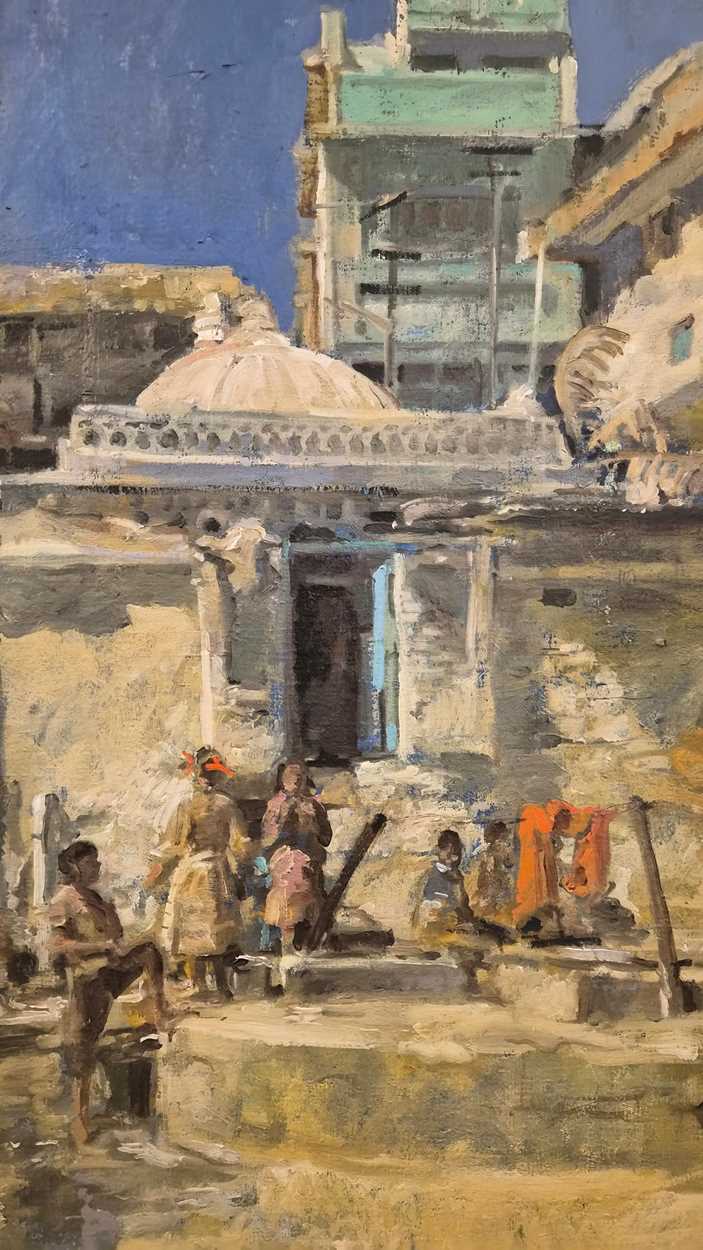 Description: Oil on canvas, signed with monogram bottom left corner. A beautiful work that captures the light of a continental day. Possibly South of France?